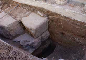 - En avant de la place Daniel Gamvrili, on a mis au jour à une profondeur de 0,35 m les restes d’un pavement de pierres, sans mobilier associé.