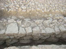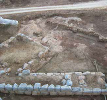 Fig. 3/ Chalkida, Terrain Papanagnostou, vue du premier état du rempart et de la tombe I, depuis le NE.