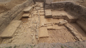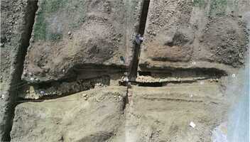 At the plain extended outside the city walls, a long, wide retaining wall of W.-E. orientation, was excavated (fig. 1). The wall was probably constructed in late Archaic times, rather to block a stream that seems to have crossed this land, as indicated by a layer of sand and cobbles. Part of the wall seems to have been destroyed by the waters of the stream. The construction of the wall was obviously intended to protect the cultivations that would exist in this area. At a distance of ca. 130m to the W, a similar retaining wall of W-E orientation, was also excavated (fig. 2). In this wall two different structural phases are evident. The first phase dates probably from the Classical period and the later phase dates from the Late Roman period. The later structural phase appears to be an attempt to repair and strengthening the wall. During this later phase, a rectangular structure with a stone pipe had been attached to the south side of the wall. The retaining wall possibly served the same purpose as the similar wall found at the previous excavation, i.e., to protect the cultivations from the waters of a stream. The rectangular structure attached to the wall probably was used to collect, through a conduit, water from the stream, for the irrigation of the crops. A cobble layer within the structure was apparently created by the continuous deposition of stream waters.