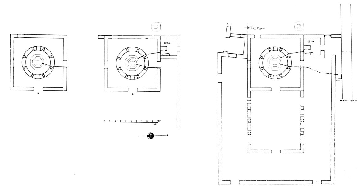 Sur toute l’étendue du terrain exproprié, au Sud-Ouest des trois basiliques, P. Lazaridis a achevé cette année le dégagement du baptistère, de l'édifice absidal et du rempart antique.