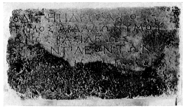 Une inscription bilingue gréco-phénicienne a été découverte fortuitement, en 1982, parmi des gravats provenant d’une démolition (fig. 80). Il s’agit d’une dédicace à Aphrodite (l’Astarté phénicienne) faite par le fils du dernier roi de Sidon, Abdalonymos, dont le nom n’était jusqu’à présent pas attesté épigraphiquement. L’inscription, qui date du dernier quart du IVe siècle av. J.-C., est publiée, pour la partie grecque, par Mme Ch. Kantzia et, pour la partie phénicienne (beaucoup moins lisible) par M. Sznycer, dans l'ArchDelt 35 (1980) [1986] Mél., p. 1-30.