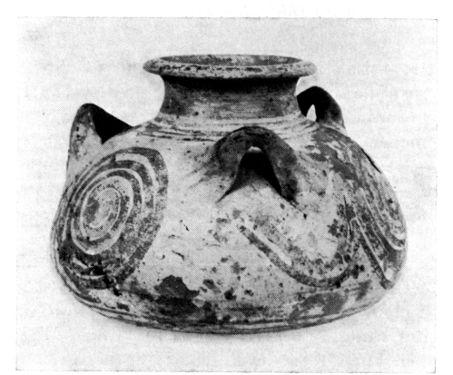 A 5 km à l'Ouest de Lamia on a fouillé, en 1978, onze tombes à chambre mycéniennes creusées dans les flancs d'une ravine. Toutes, sauf deux, avaient été réutilisées à l'époque protogéométrique et visitées par des fouilleurs clandestins. Elles ont livré une soixantaine de vases (fig. 63), plusieurs objets en bronze (fig. 64), des perles, des boutons et sept sceaux dont un de forme cylindrique. Ibid*., p. 136-137.