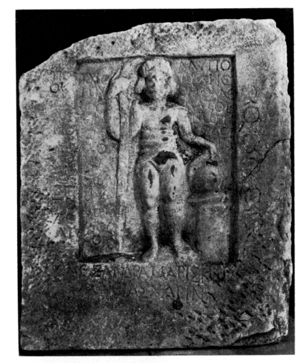 Nous illustrons à la fig. 82 une stèle funéraire de gladiateur avec épitaphe, d'époque impériale, provenant de l'église du Prophète-Élie. ArchDelt 33 (1978) [1985] Chron., p. 268.