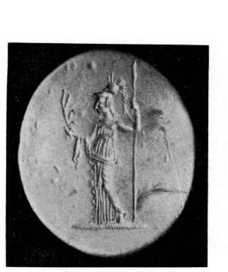 Une bague en or à chaton ovale représentant Athéna (fig. 93) a été trouvée fortuitement en 1978 aux abords de la nécropole classico-hellénistique. ArchDelt 33 (1978) [1985] Chron., p. 313.