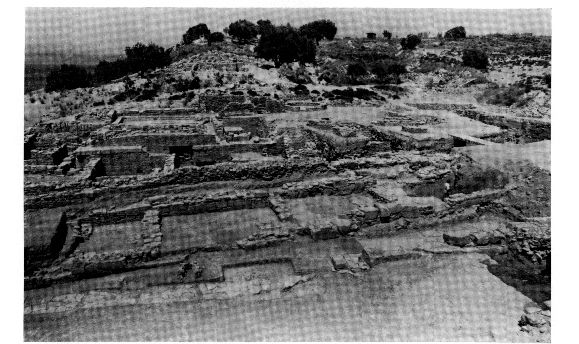 Poursuivant l'exploration de l'édifice Τ (construit au MR I), on a trouvé, dans la partie Est du portique, les restes d'une fenêtre qui appartient à une série de remaniements du MR I-II (enclos de dalles, silos). A l'Est du portique, le magasin 25 a été fouillé. Il semble bien que l'édifice T, qui est constitué d'une aile Nord de 55,40 m de long avec portique ouvrant au Sud sur une cour de 28,75 m (Est/Ouest) sur plus de 38 m (Nord/ Sud) se complétait par une aile Est d'au moins 40 m de long, ce qui en faisait un énorme complexe.