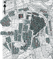 Magnetometer survey over some 14.5ha was undertaken to gain a general understanding of the nature and density of sub-urban settlement and define its limits in this region (Fig. 1). In total 19 individual areas were surveyed, comprising 762 whole or partial 20m grid squares; 406,400 data points were collected, covering just under 11 ha. of the total area. Initial review of the geophysics plots (Fig. 2) indicates considerable modern contamination in the form of discarded parts from irrigation systems. Anomalies were re-visited to establish whether they resulted from obvious contamination or were potentially of archaeological significance. The plots suggest a ‘busy’ subsurface landscape, as expected relatively close to the palatial centre. Within the overall noise, the data indicate terracing broadly following slope contours, while possible tomb signatures appear to the south east and south west, suggesting that the cemetery lay across the southernmost section of the study area.
