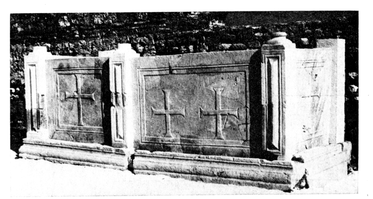 Divers travaux de restauration ont été exécutés, entre autres le remontage de la tombe monumentale de la nef Nord (fig. 82). Ergon (1984) [1985], p. 47-48.