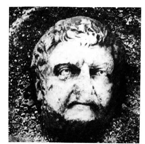 1) Grands thermes. — La poursuite de la fouille à l'extérieur de l'édifice, à l'Est, a amené la découverte d'un remblai contenant un grand nombre d'éléments architectoniques brisés et de fragments sculptés dont certains appartiennent à des statues précédemment trouvées à l'intérieur des thermes (Héraklès, Apollon, Podaleirios) ; on souligne l'intérêt du portrait de la fig. 118, qui représente le même homme qu'un autre portrait trouvé en 1981 dans la grande salle. Il est clair que ce remblai, qui s'étend jusqu'au rempart, résulte d'un nettoyage consécutif à la destruction partielle de l'édifice par un tremblement de terre. Des traces de ce séisme ont d'ailleurs pu être observées à l'intérieur du bâtiment, où une mosaïque, qui représente un thyase marin, a été retrouvée disloquée.