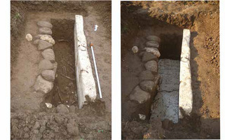 Dans la commune de Kedros, au lieu-dit Oikopeda, Christos Karagiannopoulos (XXXIVe éphorie des antiquités préhistoriques et classiques) a mené en 2014 une fouille de sauvetage sur le champ Athanassopoulos, à environ 70 m à l’Ouest du site du sanctuaire extra-muros des divinités chthoniennes de la cité de Orthè et à environ 140 m à l’Est/Nord-Est du rempart de la ville, où l’on a découvert une dalle en calcaire de tombe à ciste. La fouille a permis de dégager l’ensemble de la tombe (dim. 1,87 x 0,50 m) : orientée Nord-Est/Sud-Ouest, celle-ci était constituée d’une dalle latérale en calcaire, tandis que les petits cotés et l’autre long coté étaient faits de galets de rivière. Elle accueillait la sépulture d’un adulte déposé en position allongée, la tête au Nord-Est, sans mobilier. Le remblai à l’intérieur de la tombe comportait néanmoins des tessons de céramique commune. Sous cette sépulture, on a mis au jour un niveau antérieur, avec une sépulture perturbée, avec de la terre marron, quelques traces de feu et quelques tessons et des galets. Le squelette était éparpillé sur toute la longueur de la tombe. On a également trouvé une monnaie de bronze, un vase miniature non vernissé, des fragments de clous en fer avec des traces de bois, un strigile en fer brisé, des tessons d’un vase. Cette sépulture était contenue dans une tombe à ciste avec des dalles de calcaire (dim. 2 x 0,50 x 0,80 m). D’après le mobilier elle date de l’époque hellénistique (IIIe s. av. J.-C.). La deuxième tombe date vraisemblablement de l’époque protobyzantine ou plus tard.