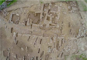 Les vestiges plus anciens sous le niveau de la nécropole sont ceux d’une grande route antique, large de 3,10 m, conservée sur 40 m de long. De part et d’autre de la rue, sont construits des édifices. Les résultats préliminaires pour ces niveaux suggèrent que ces vestiges datent de l’époque classique à l’époque romaine.