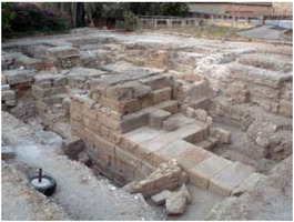 Fig. 3/ Rhodes, ville médiévale, place d'Argyrokastro, segment du rempart hellénistique, vu depuis le Sud-Ouest