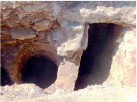 On note toutefois la découverte, rue Kolokotroni, sur le segment entre les rues Xanthou et Kodringtonos, d’une stèle funéraire inscrite en hébreux (fig. 2). Toujours dans la rue Kodringtonos, on a mis au jour l’ouverture d’une citerne taillée dans la roche, avec un accès par une série de marches (fig. 3), mais l’espace intérieur de la citerne n’a pas pu être fouillé. À proximité de celle-ci, on a dégagé la margelle d’un puits d’un diamètre de 1,20 m.