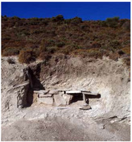 Dans la région orientale de l’île de Kos, près d’Aghios Phokas, Maria Chalkiti (XXIIe éphorie des antiquités préhistoriques et classiques) a mené en 2014 une fouille de sauvetage dans le cadre de l’ouverture d’une route au lieu-dit Aghios Georgios Petroumianos et a mis au jour les vestiges d’une nécropole de l’époque romaine tardive et protobyzantine. Cinq tombes ont été fouillées : deux tombes à ciste en dalles de schiste et trois tombes à fosse. Deux des tombes à ciste renfermaient des sépultures d’adultes et une tombe comportait une sépulture d’enfant. Elles comportaient de la céramique à glaçure dans l’une et une cruche en verre de couleur verte dans l’autre. Une des tombes à fosse comportait une sépulture double avec très peu de mobilier, deux perles en pâte de verre et un unguentarium à glaçure verte. La dernière tombe accueillait une sépulture déposée sur le dos, les mains croisées au niveau du ventre et accompagné d’un lécythe à glaçure verte.