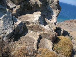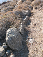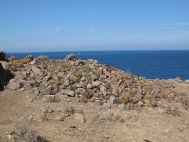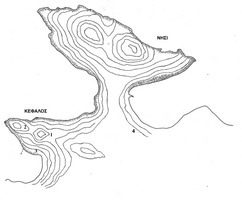 La presqu’île de Képhalos est orientée Est-Ouest et avance dans la mer sur une longueur d’environ 700 m. On y observe des murs de pierre sèche et deux rochers sur lesquels des traces de carrière sont visibles, ainsi que cinq murs formant des pièces rectangulaires et un empierrement (fig. 2-5). La céramique de surface qui a été recueillie, un gobelet et une œnochoé à pâte grise, date du Bronze Ancien et du Bronze Moyen.