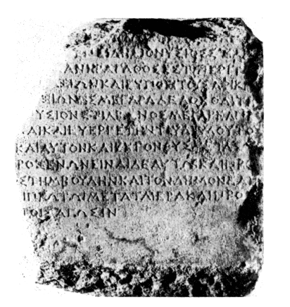 En complément d'illustration au rapport sur la campagne de 1980 (v. BCH 105 [1981], p. 855-857) nous reproduisons ci-contre (fig. 127) une photo du décret en l'honneur du mégarien Stilbon parue, sans transcription, dans les PraktArchEt 1980, pi. 155.