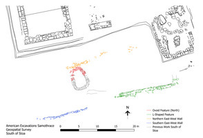 (ASCSA/Emory University) a mené en 2024 une nouvelle campagne de fouilles, de prospections et d’étude architecturale et de restauration au Sanctuaire des Grands Dieux et sur le rempart de la ville entre le Tour A et la porte Ouest. La mission s’est concentrée sur le Sanctuaire et sur la pièce 2 de la porte Ouest (fig. 1-2).