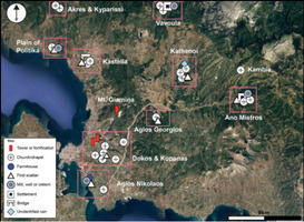 En 2024, on a procédé également à une prospection magnétique autour des tours de Mytika, de la tour à Karaouli, et de la tour de Triada-Baïleleka. On a procédé, de plus à une recherche géochimique sur ces sites, afin de détecter des restes chimiques liés à l’occupation : 41 échantillons ont été prélevés à travers les sites étudiés, dont les environnements sont variés (sableux près de la côte, plus marécageux près de Psachna et argileux dans la zone agricole des tours). Des relevés des vestiges construits ont été effectués sur les sites étudiés : 11 tours médiévales et quatre monuments ecclésiastiques.