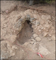 Le premier sondage (dim. 3 x 1,6 m) est implanté entre la tour Nord et la chapelle d’Aghia Paraskevi. La fouille a révélé, jusqu’à 0,50 m de profondeur, un petit four à chaux et l’espace où la chaux était mélangée. On a également dégagé une partie des fondations de la petite chapelle. Les autres sondages (dim. 2 x 0,50 m) ont atteint une profondeur de 0,25 m au Sud de la tour, afin de mettre au jour de possibles bâtiments annexes à la tour. Dans deux des sondages, on a dégagé en effet des fondations en pierre d’un mur en élévation de briques vraisemblablement : on a mis au jour une vaste couche d’argile compacte portant des traces de feu qui semble provenir de la destruction d’une élévation en briques, ainsi que de nombreux fragments de tuiles. Au niveau inférieur, sous les sédiments argileux, on a recueilli une grande quantité de céramique à glaçure et de céramique commune datée de la période byzantine, des fragments de stucs peints (des lambeaux de peintures murales) ainsi qu’un fragment de fibule en fer.