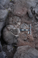 The aim in 2024 was to integrate the site at the summit of Mount Ellanion into its surrounding landscape through survey and excavation. Work was completed in the west, where the slopes around the plateau with the old olive grove were investigated. The research then focused on the area around the abandoned village of Kanakides and the neighboring Late Mycenaean fortification of Megali Koryfi. During the survey, two new prehistoric sites were discovered. The presence of pottery from the end of the Neolithic and/or the beginning of the Early Bronze Age on a rocky peak west of Mount Ellanion indicates that the earliest settlement of the area was located there. Settlement on steep, naturally fortified outcrops was particularly widespread in the southern Aegean islands between the end of the 4th and the beginning of the 3rd millennium BC. Another area with contemporary flat and broad dry-stone walls, near the village of Vlachides, between Mount Ellanion and Megali Koryfi, appears to have been inhabited for a long time, at least since Mycenaean times.