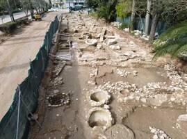 Rescue excavations in Athens have produced exciting and significant finds during 2024–25. On Vasilissis Olgas Avenue, a large Roman-era complex was uncovered near the statue of Lord Byron, a part of the city expanded eastward under the emperor Hadrian (Fig. 1). The site includes more than 60 rooms organized around a peristyle courtyard, in a building approximately 68 m long and 11 m wide. Excavations revealed three construction phases: an initial 2nd-century AD phase built with large limestone blocks and mud mortar; a stronger rebuild after the 267 AD invasion by the Heruli, using reused blocks, bricks and lime mortar; and a Late Antiquity phase featuring simpler structures made from reused fragments and mud. A now-visible semicircular arcade with a mosaic floor dating to the early 5th century AD — previously noted in the 19th century, lies east of the Byron statue. Beneath the Roman complex a 10-metre-wide defensive ditch from the 4th century BC (from the line of the Themistoclean Wall) was found, including walls likely part of an ancient city gate bridge; nearby a courtyard with a rock-hewn well and descending steps was also identified. A destruction layer from the 3rd–4th centuries AD contained roof tiles, pottery fragments, cooking vessels and colored mortar. The find contributes to a growing picture of the long-term occupation of the area (from Sub-Mycenaean times to modern Athens), and a plan is underway to transform the site into an open-air archaeological space along Vasilissis Olgas Avenue, with pedestrian walkways, green zones and a viewing path connecting it visually to monuments such as the Zappeion and the Acropolis of Athens.