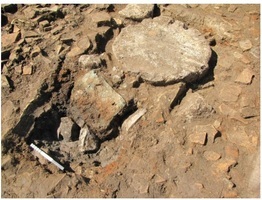 Kleidi Samikou. Erofili Kollia (Ephorate of Antiquities of Ilia) and Birgitta Eder (Österreichisches Archäologisches Institut) report on the excavations in Zone A (yelow area, Fig. 1) at Kleidi Samikou, carried out from 19 August to 27 September 2024, as part of a synergasia between the Ephorate of Antiquities of Ilia Samikou and ÖAI (2022-2026). The main aim of this season was to reveal the rest of the building in its north-west half part (Fig. 2). Excavation also revealed a second major space (Northwest Hall, 8.5 × 7.44m) 605 with two axial internal supports constructed from limestone, possibly reflecting temple architecture from the sixth century BC. Roof tile deposits were also identified, indicating that the building was abandoned around 300 BC. Significant finds include a large marble krater showing ancient repairs, and a bronze inscribed plaque (40.5 × 27.5cm) that documented the dedication of the sanctuary to Poseidon of Samikon (Fig. 3). The roof tile fragments provide evidence of a Laconian-style tiled gable roof.