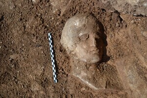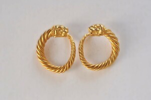 Aigio - Trapeza (ancient Rypes). The 2024 research excavations at Trapeza, near Aigio, which has been identified with the ancient city of Rypes, were undertaken in October 2024. The project is directed by Andreas Vordos (Ephorate of Antiquities of Achaia). This season’s focus was on Building C, a public building in the area southeast of the temple terrace. Excavation revealed a 16.8m-long kerb with a stylobate, whose superstructural elements suggest a construction date prior to 300 BC. Fragments of Corinthian capitals were found, featuring Peloponnesian-type sigmoid bases and stylised acanthus leaves, comparable to the findings at the Temple of Apollo at Bassae. Remains of Ionic architectural members emerged within, suggesting that there was a nearby additional structure. Significant sculptural finds indicate at least three carved lions (two in a crouching position) and a marble funerary stele of a youthful male, all in Pentelic marble (Fig. 1). In addition, finds in intact burials inside the monument, included a pair of gold earrings and a gold necklace, a gold ring, iron buttons, along with cist tombs and a sarcophagus (Fig 2). A nearby section also produced architectural fragments and pottery dating to the eighth century BC. Excavations of the Hero’s Tomb will continue under the upcoming five-year program.