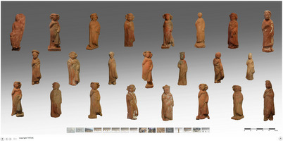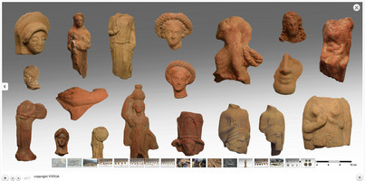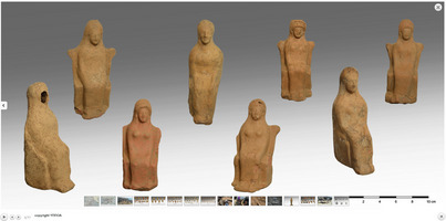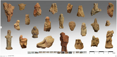 Lors des fouilles de 2023, on a recueilli une très grande quantité d’offrandes, dont la majeure partie proviennent du bâtiment 3 et du dépotoir : on compte des figurines datant de l’époque archaïque à l’époque hellénistique (plus de 2000 objets), des lampes de l’époque archaïque à l’époque romaine, des lampes à plusieurs becs et des kernoi comportant des vases miniatures, de la céramique fine attique à figures noires et à figures rouges, ainsi que d’autres céramiques fines importées, des bijoux en or, en argent et en bronze, en os et en verre, ainsi que des vases en albâtre et en marbre. On a recueilli également des monnaies en bronze de l’époque romaine : des sesterces de Trajan (après 106 apr. J.-C.) et des monnaies de Dioclétien (après 285 apr. J.-C.) et une monnaie d’argent de Kythnos représentant une tête d’Apollon au droit et une lyre au revers. On a également trouvé de nombreux vases à boire (rituels) de l’époque romaine, provenant de l’intérieur du temple (bâtiment 4) et du dépotoir. Ils portent des inscriptions gravées avant cuisson, des dédicaces de femmes, ce qui confirme que le sanctuaire est dédié à Déméter et à Koré. À l’intérieur du bâtiment 3, tout près de la porte, on a trouvé une base monumentale inscrite (dim. 1,43 x 0,47 x 0,21 m) qui conserve le texte : « Νηρηίς δαμιουργός ».