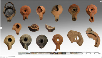 Sanctuaire - Édifice religieux - Temple - Figurine - Inscription - Lampe - Monnaie - Parure/toilette - Revêtements (mur et sol) - Métal - Os - Verre