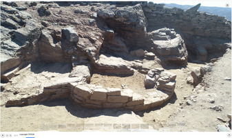 Les fouilles de 2023 se sont concentrées sur le bâtiment 3 (dim. 21 x 8,50 m) construit en appareil trapézoïdal. Il présente une entrée monumentale au milieu de son mur Nord. Deux sondages ont été menés pour explorer son organisation interne. La majeure partie des offrandes découvertes au sanctuaire proviennent de la couche d’abandon de ce bâtiment. À l’Est de l’édifice, on a mis en évidence une série de niches pour y poser des offrandes. Dans cette partie de l’édifice aussi, on a dégagé un foyer en pierre, en fer à cheval (dim. approx. 2,50 x 2 m), remplie de cendres, d’os animaux et des offrandes. Cette disposition fait penser que cette partie de l’édifice n’était peut-être pas couverte. On a également recueilli une grande quantité d’offrandes sur une bande qui longe son mur arrière Sud, du côté Ouest. Des blocs qui dépassent du mur indiquent qu’à cet endroit était placée une étagère en bois.