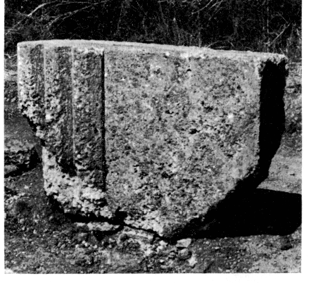 Sur le long côté Nord du temple on a retrouvé de nombreux fragments d'architecture : des fûts de colonnes, un chapiteau presque intact (fig. 56), un bloc de frise avec triglyphe et métope (fig. 57), plusieurs éléments de corniche et des tuiles en marbre, ainsi qu'un bloc d'épistyle ayant conservé la régula et deux gouttes.