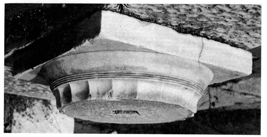5) Temple de Marmara. — Trente-deux tambours de colonnes du temple dorique classique — dont sept tambours inférieurs — permettent de restituer une hauteur de colonnes de 6,60 m environ, soit 6 diamètres 2/3. Deux plinthes de stylobate et plusieurs fragments de marches, de triglyphes et de corniche témoignent d'une indubitable unité de conception et d'exécution entre cet édifice et le temple d'Apollon Pythien, unité qui ne va toutefois pas jusqu'à la « normalisation », comme le prouvent de multiples différences de détail.