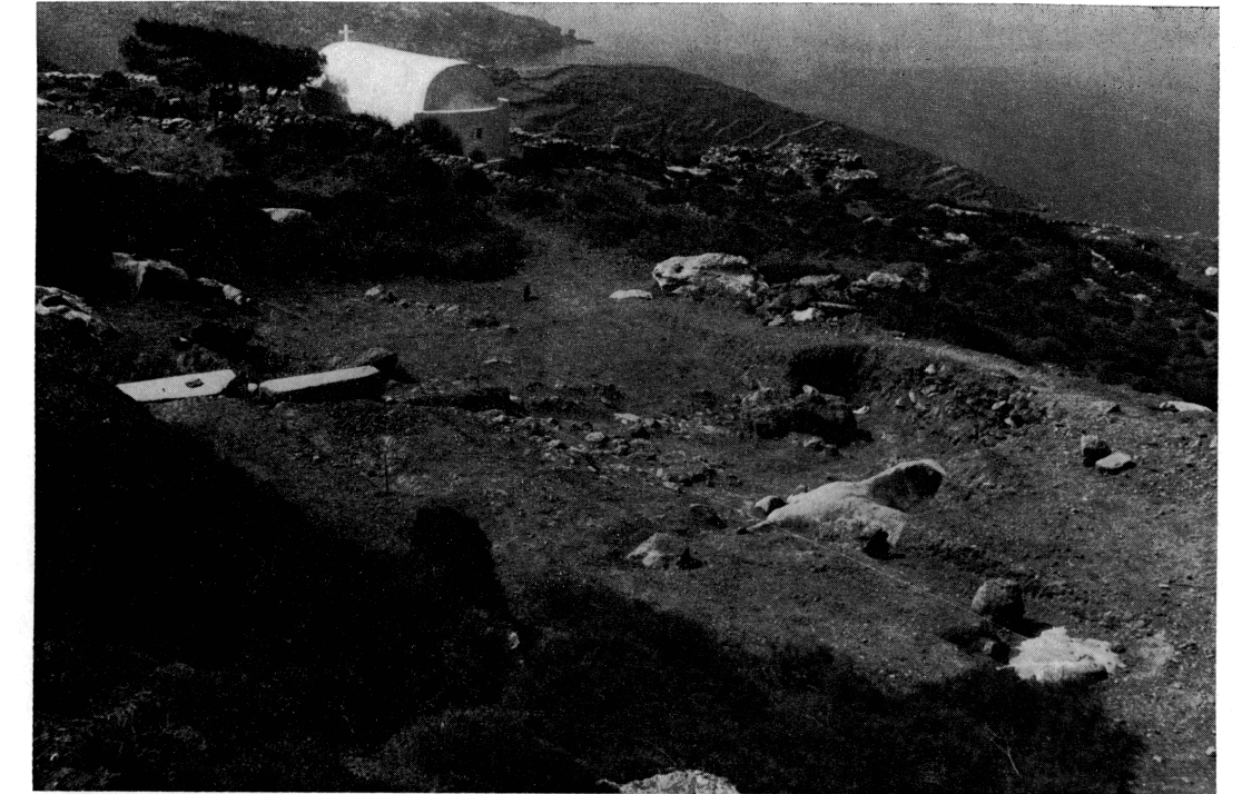 Fouilles de l'Université de Jannina. — A la suite de plusieurs trouvailles fortuites, dont celle d'un torse de kouros archaïque vêtu (publié dans Στήλη, volume d'hommages à la mémoire de , p. 414), a entrepris, en 1979, l'exploration systématique des abords de la chapelle d'Haghia Irini, au-dessus du village de Lefkès (fig. 165).