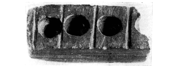 Dans la partie méridionale de la terrasse qui bordait cette enfilade à l'Est, on a commencé de fouiller un dépôt de l'époque des anciens palais, qui a notamment livré une statuette d'orant en bronze en très bon état (fig. 195) et un kernos votif en pierre de 4,8 x 2,2 cm (fig. 196).
