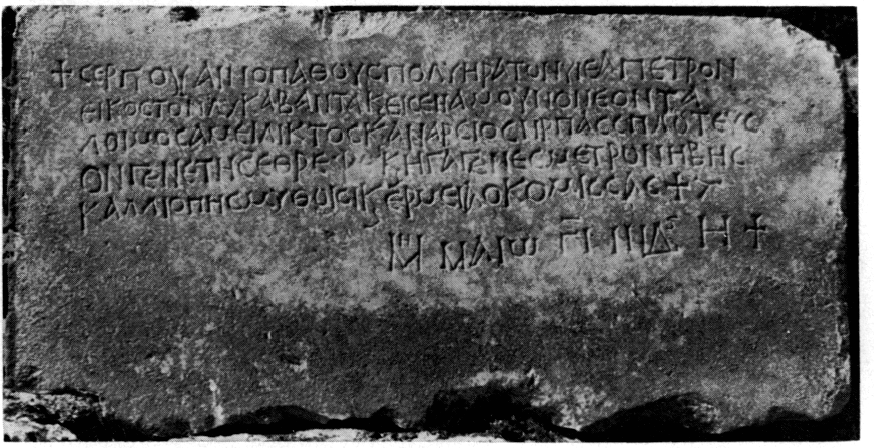 Nous illustrons aux fig. 15 à 17 trois des stèles funéraires à inscription métrique que avait trouvées en 1977 dans l'atrium de la basilique de Kraneion (v. BCH 102 [1978], p. 660) et qu'il vient de publier dans les PraktAE 1977 (1980), p. 172-175. Dans cette même publication, aux p. 180-183, l'auteur revient sur le problème de la couverture du baptistère et propose, après mûr examen, une restitution (fig. 18) qui s'éloigne sensiblement des conclusions de la campagne de 1976 (v. BCH 101 [1977], p. 539).
