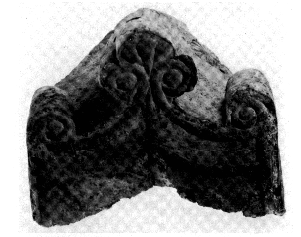 1) A l'extrémité Ouest du temple du IVe siècle, la fouille a rencontré le niveau de destruction du temple archaïque, d'où l'on a retiré des blocs de murs brisés (le poids de l'un d'eux est évalué à 15 tonnes), des tuiles, des antéfixes, des clous, des fragments de mortier ainsi que des pointes de flèches en bronze et du matériel qui confirme la date proposée pour la destruction du temple (dernier quart du Ve siècle av. J.-C.). Cette couche contenait également de nombreuses concentrations de cendre et de charbon. Un premier examen des fragments d'architecture révèle que le temple avait, à l'Ouest, un toit en croupe et des antéfixes à décor moulé (fig. 23), que le mortier était utilisé quelque part dans l'élévation, et que l'édifice n'était probablement pas périptère.
