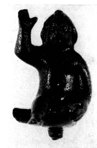 2) A l'Ouest des neuf oikoi qui constituent la bordure méridionale de l'aire sacrée, et immédiatement au Sud du mur identifié comme le θριγκος λίθων entourant la tombe d'Opheltès (ibid.) on a découvert le soubassement d'une construction circulaire de 5 m de diamètre, élevée pendant le deuxième quart du Ve siècle av. J.-C. à l'aide de blocs qui proviennent apparemment d'un monument rond plus ancien. A l'Ouest de cette plate-forme, dans un dépôt perturbé à l'époque paléochrétienne, on a trouvé une statuette en bronze représentant un petit enfant qui pourrait être Opheltès (fig. 241.