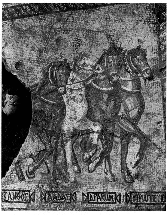 Entre cette fouille et l'agora, le terrain Bonôris, déjà sondé en 1965, a été exploré sur toute sa superficie (27 x 14 m). Les premières traces d'occupation y remontent à l'ΗΑ, fait exceptionnel à Argos. Au-dessus se superposent des niveaux HM et géométrique. Au début de l'époque archaïque de nombreux objets votifs (figurines, couronnes, bobines, cotyles, etc.), témoignent déjà du caractère sacré de ce lieu, sur lequel s'élève, au Ve siècle av. J.-C., un édifice en pôros qui semble bien être un temple ou peut-être un autel. Celui-ci demeura en usage pendant toute l'époque hellénistique, avant d'être détruit et recouvert, au IIe ou IIIe siècle ap. J.-C., par une maison (?) dont le sol de mosaïque fut bientôt remanié par l'aménagement d'un impluvium. A la fin de l'époque romaine, on construisit sur cet emplacement une villa monumentale, dont toutes les pièces fouillées étaient pavées de mosaïques polychromes, les unes à motifs géométriques souvent complexes, les autres à représentations figurées : danse dionysiaque (fig. 33), scène de vendange (fig. 36), Aphrodite sortant du bain, quadrige (fig. 34). Des fragments de placage en marbre et de fresques murales ont été retrouvés sur le sol de plusieurs pièces. Les mosaïques avaient été partiellement endommagées par des constructions byzantines, des grandes fosses creusées aux XIIe-XIIIe siècles, et par la nécropole médiévale dont trente-huit nouvelles tombes, toutes dépourvues d'offrandes, ont été fouillées. ArchDelt 29 (1973-74) [1979] Chron., p. 230-242.