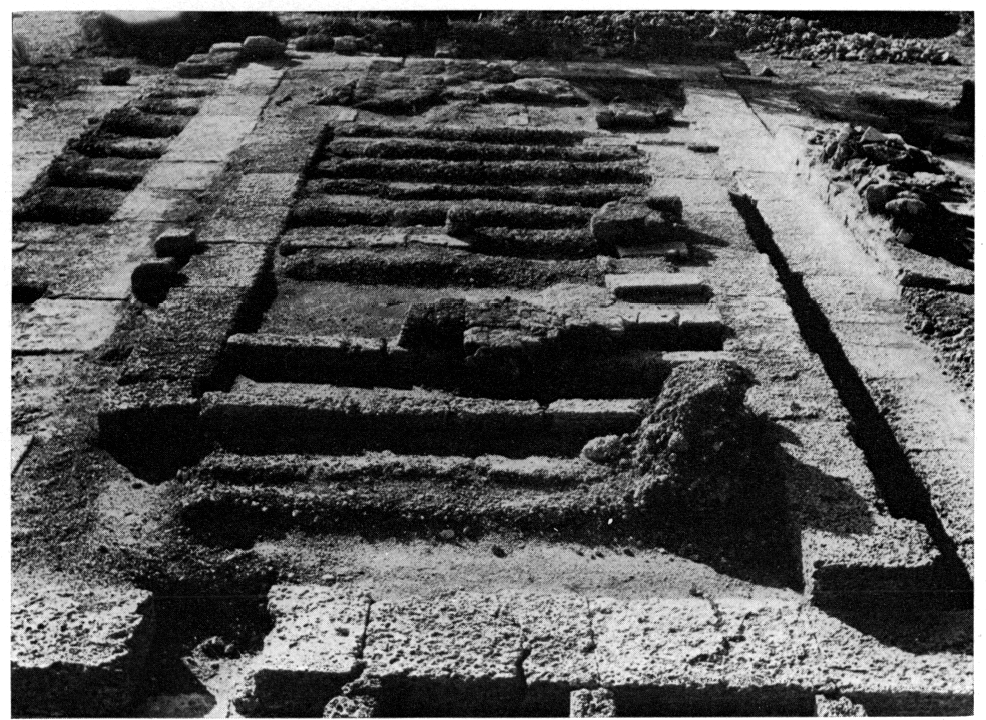 La campagne de 1979 a permis à de dégager la colonnade Nord et le sèkos du grand temple dorique périptère. Le monument, qui était également pourvu d'une colonnade intérieure, mesure 35,10 x 15,85 m. Les blocs de fondation du toichobate et du stylobate sont appareillés sans l'aide de crampons (fig. 62). Devant la krèpis Nord, on a retrouvé de nombreux fûts de colonnes, blocs de corniche et éléments de couverture en marbre qui s'étaient écroulés. Le remblai du sèkos a livré les fragments d'une statuette en marbre, un couvre-joues en marbre provenant des sculptures de l'un des frontons, un disque de miroir en bronze, plusieurs figurines en terre cuite et des pointes de flèches. Sur une lambourde de l'opisthodome, on a recueilli une monnaie en bronze d'Héraia (420-234 av. J.-C.). Ergon 1979 (1980), p. 19.