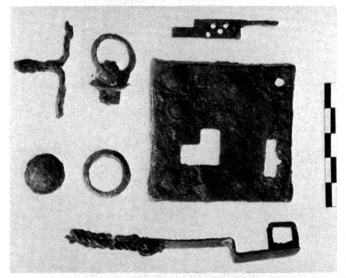 Tombes. — Dans une douzaine de sondages, on a recoupé la nécropole qui s'étendait au Nord et au Nord-Ouest de la ville antique, dans l'espace compris aujourd'hui entre les rues Patréôs et Aratou. Un grand nombre de tombes, de types variés, souvent réunies en vastes complexes ou groupées à l'intérieur de périboles ou de monuments funéraires, ont été mises au jour : simples fosses, tombes à ciste ou à couvercle de tuiles, tombes à parois maçonnées — parfois voûtées — , sarcophages, urnes cinéraires1. Excepté quelques tombes hellénistiques, elles s'échelonnent toutes entre la seconde moitié du Ier siècle av. et le VIe siècle ap. J.-C., l'essentiel du matériel datant des IIIe-IVe siècles ap. J.-C. Les objets illustrés aux fig. 75-76 proviennent de sépultures du Ier siècle ap. J.-C.