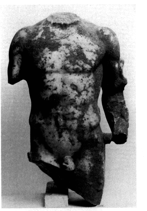 Trouvailles diverses. — Parmi l'abondant matériel recueilli au cours de ces fouilles, citons plusieurs statues, dont un torse d'Hermès du IIe siècle ap. J.-C., copie d'une œuvre de style sévère (fig. 72 ; ibid., p. 364- 366), et une divinité féminine composite (fig. 73 ; ibid., p. 406) ; de nombreux fragments architecturaux ; plusieurs stèles funéraires inscrites, en grec ou en latin (ibid., p. 385, 397, 406) ; un grand nombre de lampes, et un trésor monétaire de cent dix-sept pièces d'argent, dont quatre-vingt-huit frappées par diverses cités de la Ligue achéenne (ibid., p. 364).