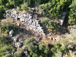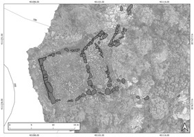 The project continues the exploration of the topography of Prasiai using tachymetric surveying, UAV-based remote sensing, satellite imagery analysis and archaeological fieldwork. At the area of the fortification the remains of the walls and towers were cleared of vegetation and recorded using handheld camera and drones to create 3D models via Structure from Motion (Fig. 1). Numerous insights were gained, using the same method, regarding the internal structure of the fortification and its system of pathways. The Towers show rectangular, almost square plans of different sizes ranging from 16.3 to 26m2, from which the highest situated tower clearly stands out by its definite square layout and a base area of 111.5m2. In front of the eastern wall of the tower an additional entrance structure could be identified (Fig. 2) which underlines the importance of this tower as a central building maybe also of administrative importance.