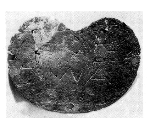 Colline du Phrourion. — Sur le flanc Nord de l'acropole antique, à 150 m au Sud de l'agglomération moderne, deux dépôts votifs ont été découverts. Ils contenaient un grand nombre d'idoles anthropomorphes et zoomorphes (notamment chevaux et sangliers) et de plaquettes d'argile avec représentations en relief (figures féminines et gymnastes, fig. 114). Un terminus ante quem est fourni, pour l'un des dépôts, par deux monnaies de bronze de la seconde moitié du IVe siècle av. J.-C., trouvées dans les terres du remblai. Dans le second dépôt, certaines figurines féminines ne sont pas antérieures, stylistiquement, à la fin du IVe ou au début du IIIe siècle av. J.-C. La petite plaque en bronze (amulette ?) de la fig. 115, qui porte les restes d'une inscription archaïque, a été trouvée en surface. ArchDelt 29 (1973-74) [1979] Chron., p. 578-579.