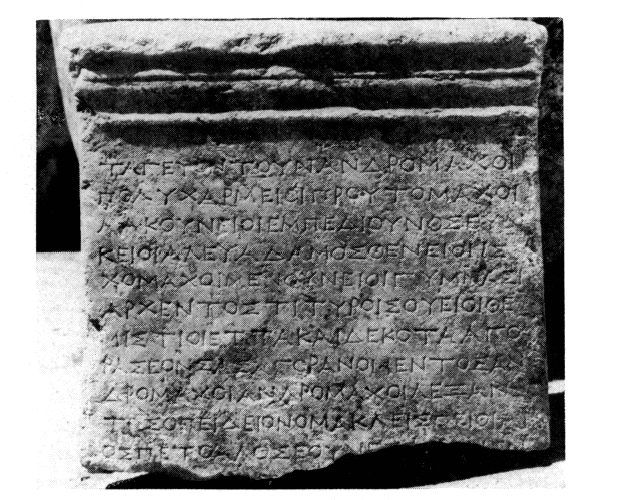 Parmi les trouvailles fortuites, plusieurs inscriptions sont à mentionner : les onze premières lignes d'un décret honorifique des citoyens de Larissa (fig. 132) ; deux actes d'affranchissement fragmentaires (fig. 133) ; quatre stèles votives, avec dédicaces à Artémis, Gê et Apollon ; six stèles funéraires. Le musée a également enregistré un certain nombre d'objets (vases, fragments de sculptures, monnaies, etc.) trouvés dans les environs. ArchDelt 29 (1973-74) [1979] Chron., p. 560-564, 571-573, 580-582.