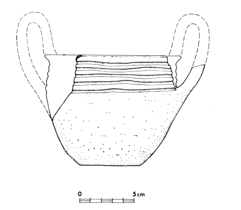 Les dépôts du Bronze Moyen, qui précèdent la couche 19, ont notamment livré une imitation (non tournée) de canthare minyen, dont on ne connaît guère d'exemple que sur les sites côtiers de Chalcidique (fig. 139).