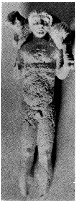 1) Mur Nord. — Un segment de 107,80 m a été dégagé (fig. 143). On peut y distinguer plusieurs états de construction. Dans le bâtiment tardo-classique auquel se superposa le rempart (v. BCH 103 [1979], p. 589-593), la poursuite de la fouille a fait apparaître deux nouvelles bases de piliers carrées qui confirment que l'on est bien en présence d'une stoa ou d'une salle hypostyle. Outre la céramique et les figurines, on a recueilli, dans ce secteur, une statuette de kouros criophore en ivoire (hauteur 7 cm) qui semble être une interprétation hellénistique d'un original archaïque (fig. 144).