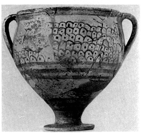 2) Dans la région d'Haghia Thékla deux tombes ont été fouillées : une tholos mycénienne — la première trouvée dans les Cyclades (fig. 161) — et une ciste géométrique. La première, qui avait servi au moins à neuf inhumations, a livré trente-huit vases (fig. 162-163), un petit poignard en bronze et quelques objets de parure, le tout assignable au HR III B. La seconde contenait une oenochoé trilobée, des fragments de skyphos et un bracelet en bronze. Ergon 1979 (1980), p. 25-26.