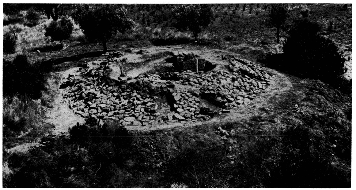 a montré que la construction en forme de fer à cheval qui occupe le centre du tumulus (fig. 90) n'avait aucun rapport avec celui-ci. D'autre part, les pithoi funéraires ne permettant pas de dater précisément le tumulus, on ne peut espérer recueillir de nouveaux éléments de datation qu'en fouillant le petit secteur demeuré inexploré.