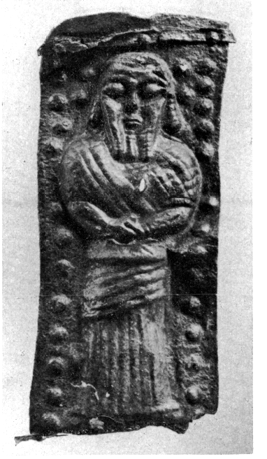 Parmi les objets en bronze on mentionne un relief oriental représentant un homme barbu (fig. 94), un petit taureau du début du Ve siècle av. J.-C. monté sur une base étroite et portant les restes d'une inscription : ENO (fig. 97), divers bijoux, des fragments d'ustensiles (poignées, griffons) et un grand crochet en S terminé d'un côté par une tête de lion et de l'autre par une tête de serpent (fig. 95). D'autres bronzes ont été trouvés dans un puits de la cour du portique d'Écho, notamment deux casques du groupe de Myros pratiquement intacts et un torse de cheval en fonte creuse du début du VIIe siècle av. J.-C. qui recolle avec la tête Br 2127 (Olympia IV, n° 956).