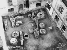 Junction of Kallisperi 19 and Parthenonos. Th. Iliopoulos (Γ’ ΕΠΚΑ) reports on excavation in this 199m2 plot (Fig. 1). Byzantine walls bordered five areas, enclosing seven storage silos and two pithoi. In the fill was a LH IIIB-C sherd. Marble spolia built into the walls included a funerary kioniskos with the inscription [--]ΛΕΩΝ [--]ΛΕΙΔΟΥ ΘΕΣΠΙΕΥΣ, and a doric column capital.