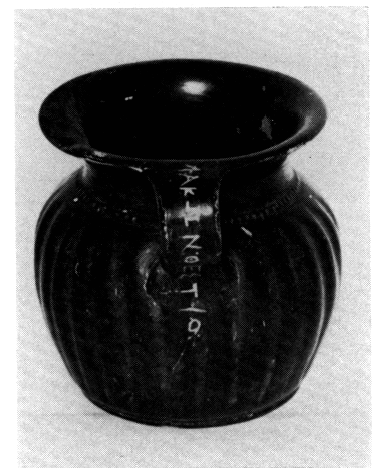 C'est un ensemble de quarante-deux tombes qui a été mis au jour. A l'exception de l'une d'elles, datée par le mobilier du Ve siècle av. J.-C., toutes sont assignables au début de l'époque byzantine (VIe-VIIe s. ap. J.-C.). Souvent doubles ou multiples, elles sont construites en maçonnerie et couvertes d'une voûte. Leurs parois intérieures sont stuquées et, dans un cas, décorées de motifs incisés. Le mobilier comprend essentiellement des vases en céramique ou en verre (fig. 25), quelques monnaies d'Héraclius (614-615 ap. J.-C.) et divers objets en métal. La fouille de ce terrain a également produit du matériel géométrique récent (fig. 27) et classique (fig. 26). On sait en effet que la nécropole de Cynosarges était en usage dès l'époque géométrique.